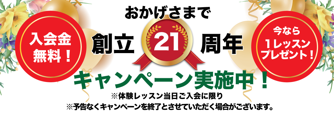 21周年記念入会金、1レッスン無料